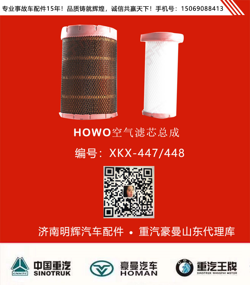 中國重汽豪沃輕卡配件2018款空氣濾芯,重汽豪沃輕卡配件/XKX-447/448