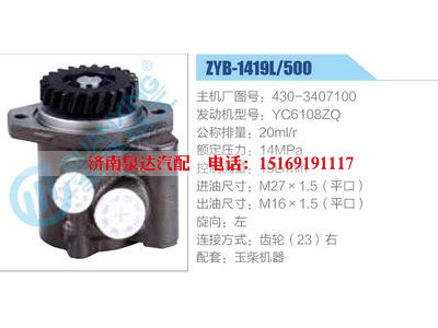 ZYB-1419L-500,430-3407100,YC6108ZQ動力轉(zhuǎn)向助力泵,葉片泵